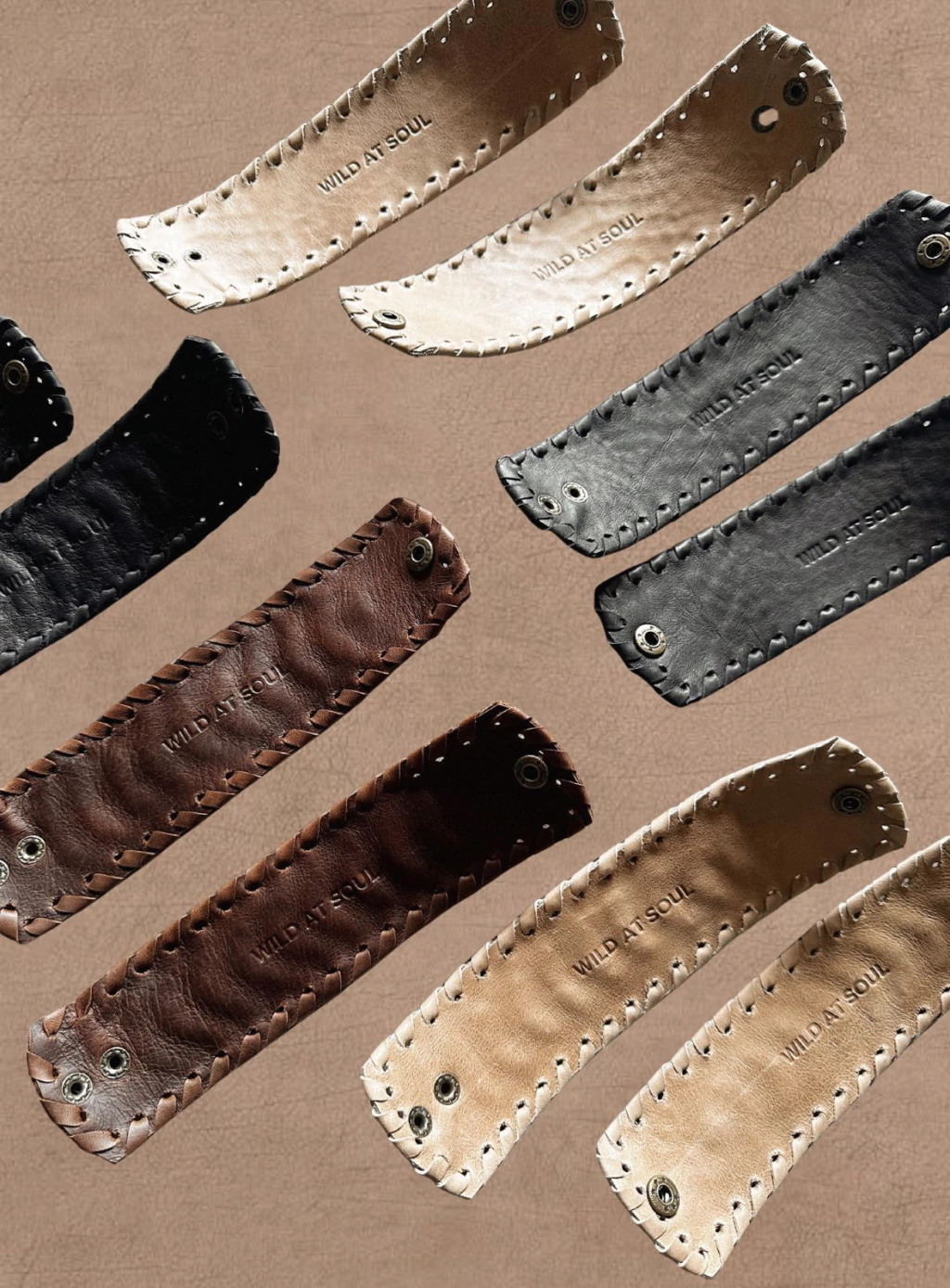 Como en todas las piezas de Wild at Soul, cada brazalete es único e irrepetible: las variaciones naturales del cuero y el trabajo manual le otorgan identidad y carácter propio.